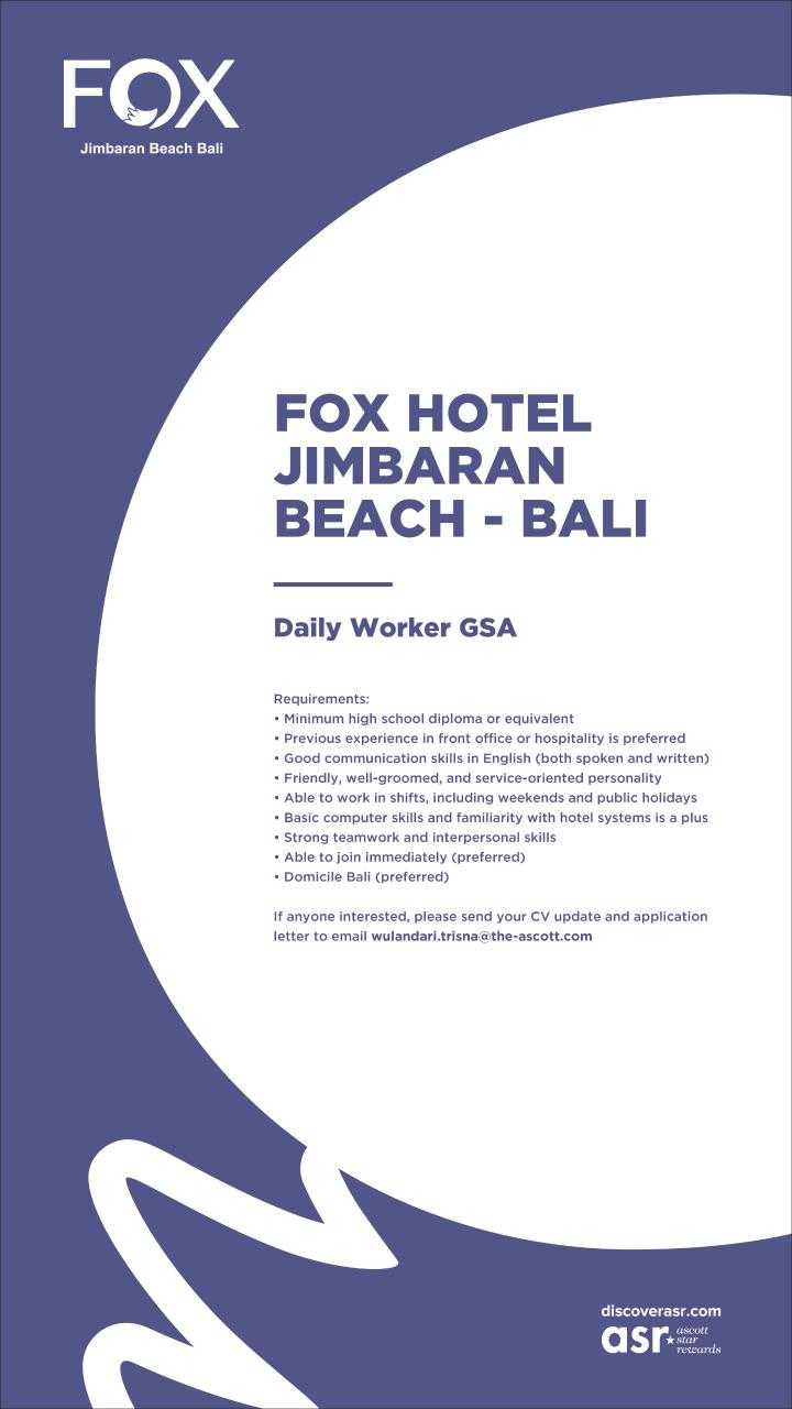 If anyone interested, please send your CV update and application letter to email wulandari.trisna@the-ascott.com