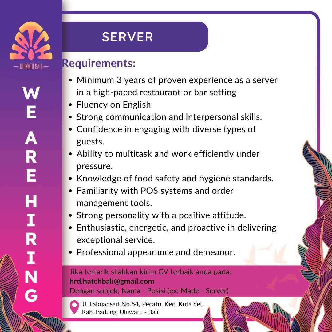 Minimum 3 years of proven experience as a server in a high-paced restaurant or bar setting